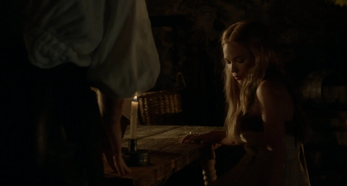 Leith visits Greer after she has been turned away from court and is helping prostitutes get money from nobles. Once he learns of her position with these women, she walks away so to not be judged by him. Leith follows her into her home and they make love.